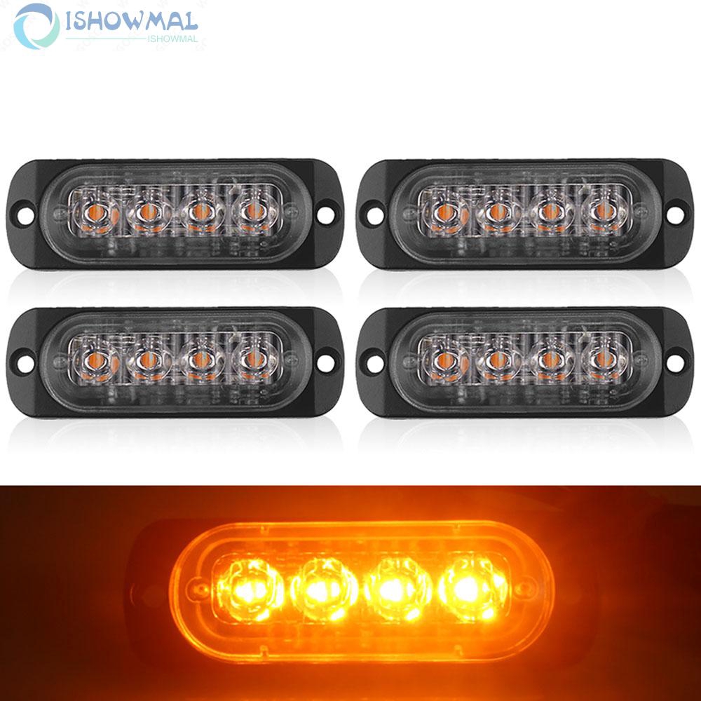LED Lights Truck Strobe Replacement 4Pcs Set Dustproof Splash-Proof Parts Ultra-thin Super bright Yellow 4 LED