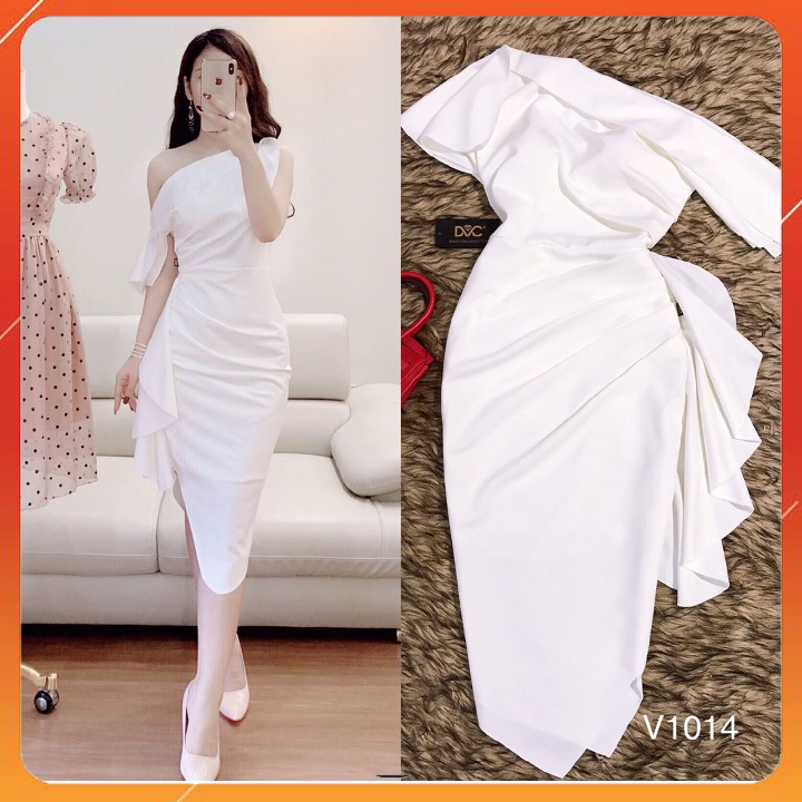Đầm dự tiệc trắng body- lệch vai Siêu đẹp V1014 - chatfashion.vn (Kèm ảnh thật trải sàn do shop tự chụp)