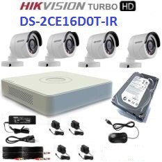 TRỌN BỘ 4 CAMERA HIKVISION DS-2CE16D0T-IR (HD 2.0MP) + ĐẦU GHI HÌNH DS-7104HQHI-k1+ ổ cứng western 500G