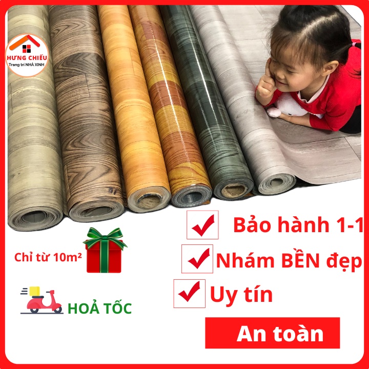 Simili trải sàn vân gỗ miếng thảm nhựa lót nền giả gỗ pvc nhám chống trơn trượt free ship